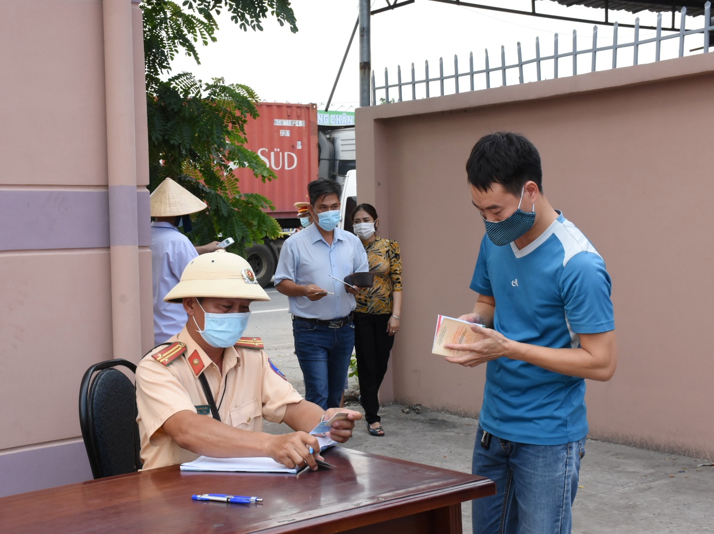 Lực lượng chức năng làm việc tại chốt kiểm soát Quốc lộ 51 (địa phận phường Mỹ Xuân, TX.Phú Mỹ, giáp huyện Long Thành, tỉnh Đồng Nai).