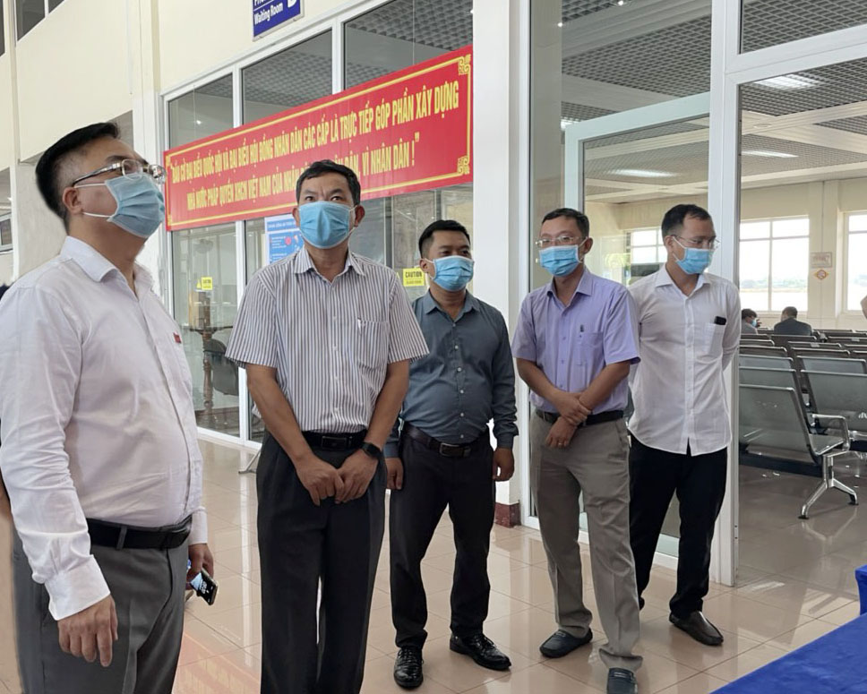 Ông Hoàng Vũ Thảnh (bìa trái), Quyền Chủ tịch UBND TP.Vũng Tàu, Chủ tịch UBBC TP.Vũng Tàu, kiểm tra công tác chuẩn bị bầu cử tại khu vực bầu cử số 14 (phường Thắng Nhì).