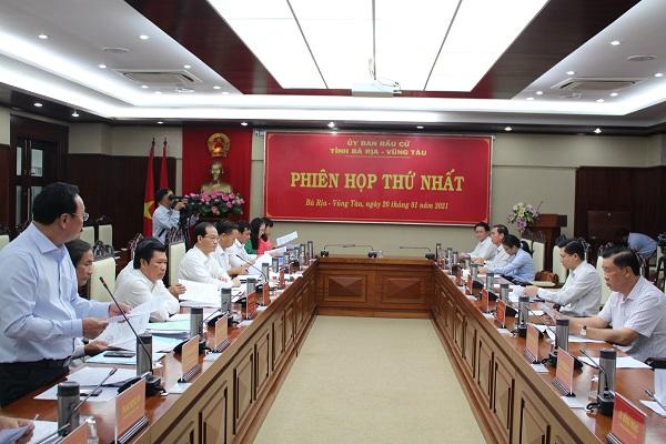 Ông Đặng Minh Thông, Ủy viên Ban Thường vụ Tỉnh ủy, Phó Chủ tịch UBND tỉnh (giữa); bà Lê Thị Thanh Bình, Phó Bí thư Thường trực Thành ủy, Chủ tịch HĐND TP. Vũng Tàu và ông Hoàng Vũ Thảnh, Phó Bí thư Thành ủy, Chủ tịch UBND TP. Vũng Tàu, chủ trì hội nghị.
