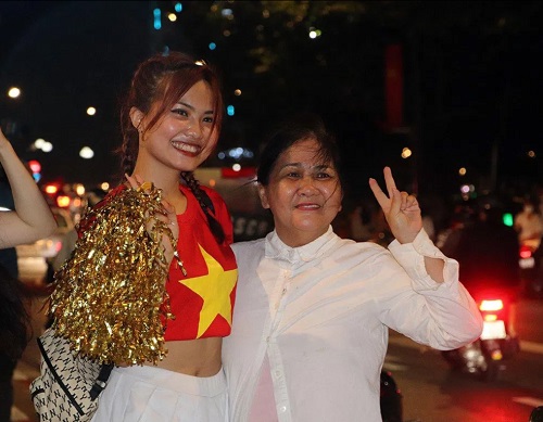 Gia đình cùng xuống đường mừng chiến thắng của U23 Việt Nam