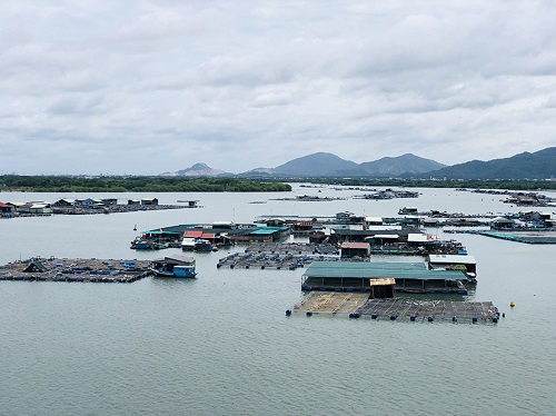 Nghề nuôi cá lồng bè được xã Long Sơn chú trọng phát triển trong nhiều năm qua. Trong ảnh: Khu nuôi trồng thủy sản trên sông Chà Và thuộc xã Long Sơn, TP. Vũng Tàu.